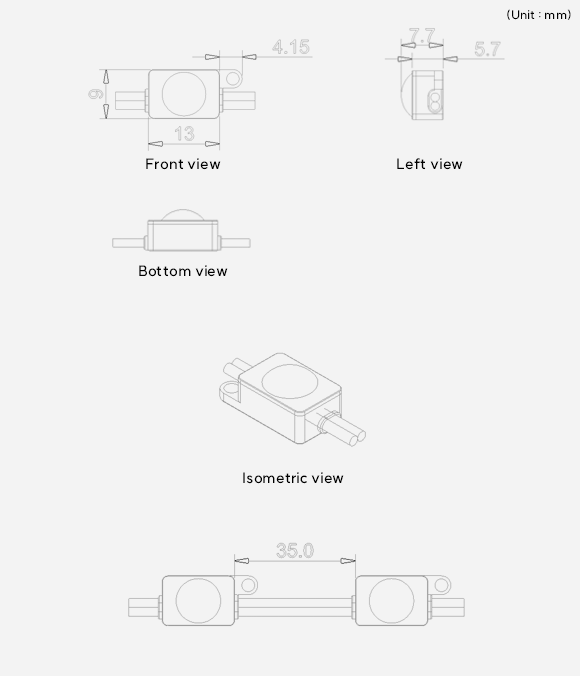 | Dimension | 13mm(W)x 9mm(L) x 7.7mm(H) | |